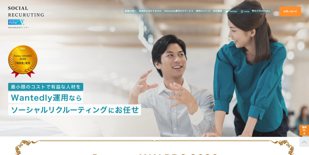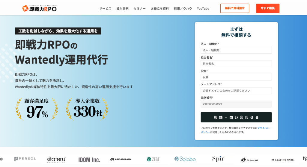 支援スタイルは「代行して終わり」ではなく、採用ノウハウを社内に残す伴走型。若手営業職を中心に、IT・通信・人材・広告など幅広い業界の採用を強化してきた実績があり、Wantedlyを軸に自社の採用力を高めたい企業に最適なパートナーと言えます。