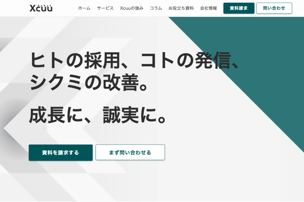 | 株式会社Xcuu | ベンチャー向け。最短1ヶ月で採用基盤構築。95%以上がPV上位15%入り。採用×マーケ視点で応募の質を改善。 | スタートアップ/少人数採用フェーズの企業 |