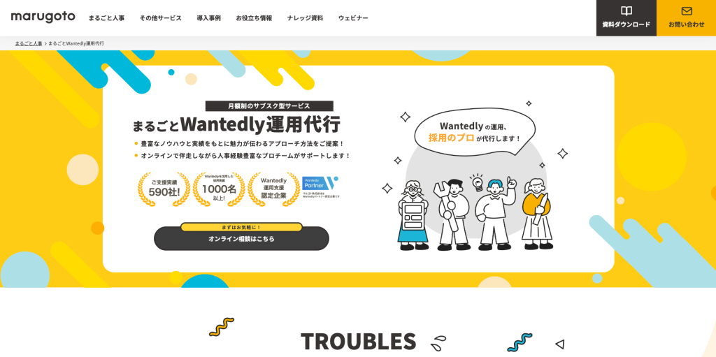 | マルゴト株式会社 | プロ人事チームが運用代行。590社支援・1,000名採用実績。自社運用ノウハウが豊富で課題可視化が得意。 | 人事目線で課題を深掘りし、確実に応募数・面談数を伸ばしたい企業 |
