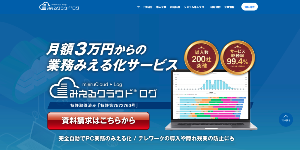 みえるクラウドログは、セブンセンスマーケティング株式会社が提供するPC業務の可視化に特化したクラウド型ログ管理ツールです。