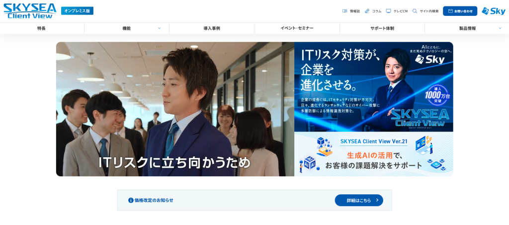 SKYSEA Client Viewは、Sky株式会社が提供する IT資産管理・情報セキュリティ対策を中核としたPCログ管理ツールです。