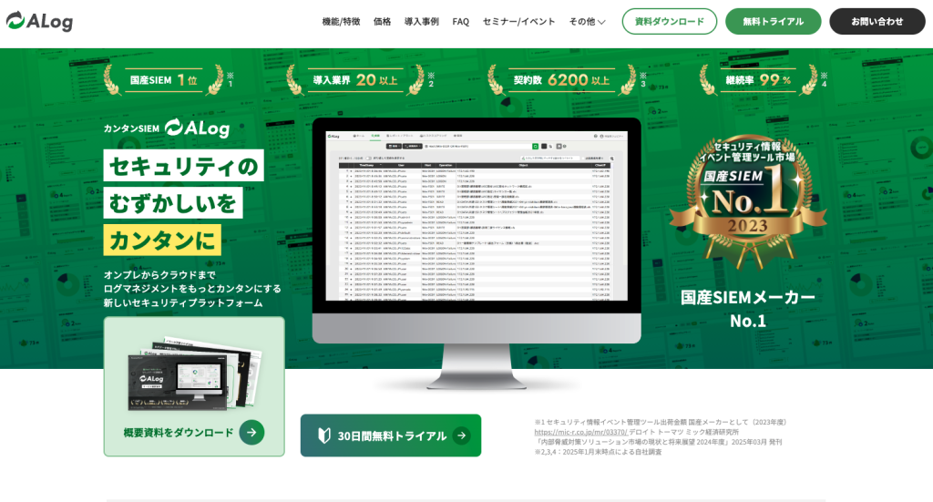 | ALog | ログ分析・自動化・AI活用 | セキュリティ監査・SOC連携重視 | クラウド / オンプレ |