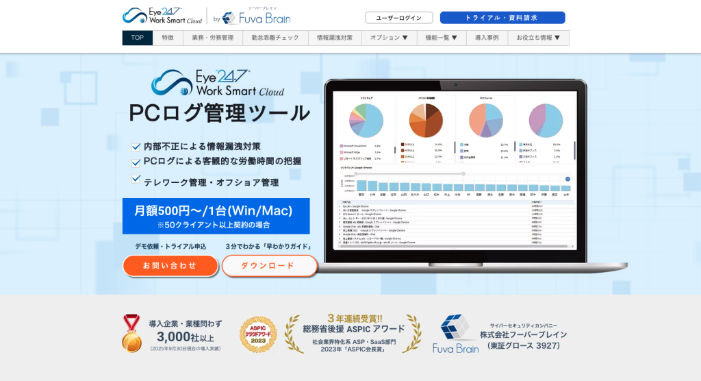 | Eye“247” Work Smart Cloud | 労務管理+業務可視化 | テレワーク管理・勤怠乖離対策 | クラウド |