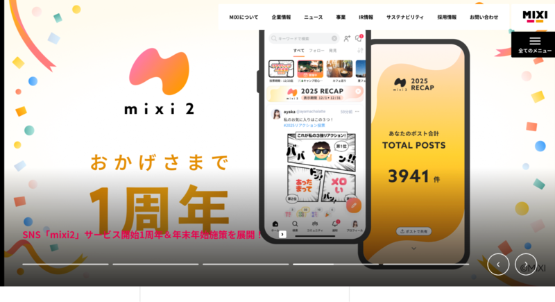 株式会社MIXIは、スマホ向けゲームアプリやSNS、AIロボット連携など多彩な領域でサービスを展開しています。