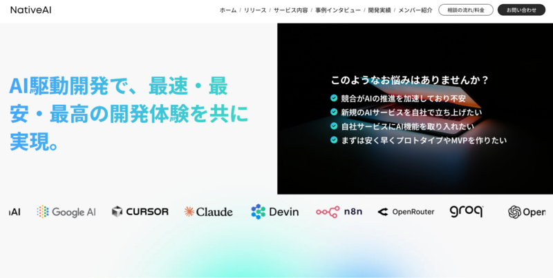 株式会社NativeAIは、AIを活用した開発手法により、アプリ制作を低コストかつ短納期で実現します。