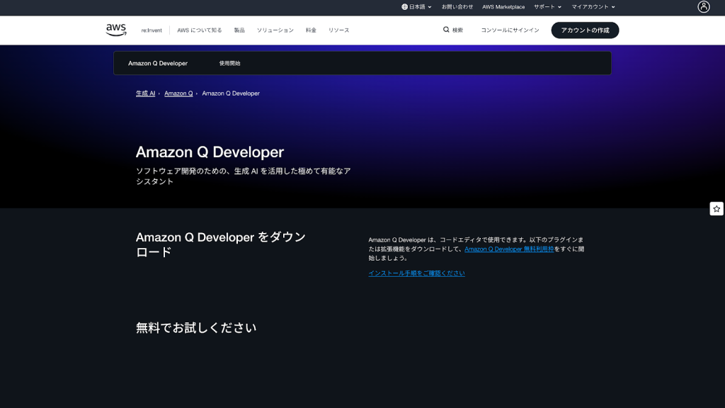 コードの自動生成や補完に加え、AWSサービスを利用した実装方法の提案や、既存コードの解説・改善支援なども行えます。