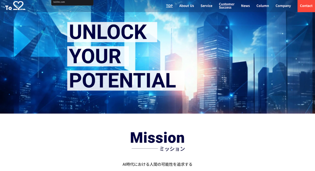 株式会社To22は、AIを中心としたDX支援サービスを提供する企業です。