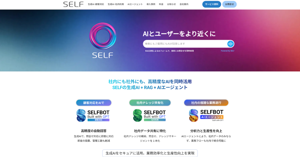 | 料金 | ■AIエージェント開発・80万円〜 ■AIDX顧問・10万円〜 ■AI研修・40万円〜 |
