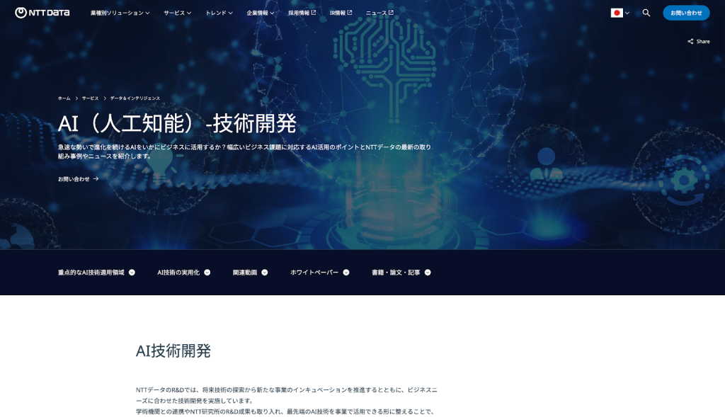 AI導入の企画段階からシステム開発、運用支援までを一貫してサポートし、企業の課題解決や業務高度化を支援しています。