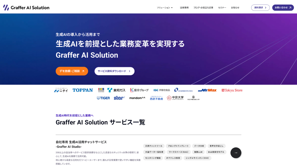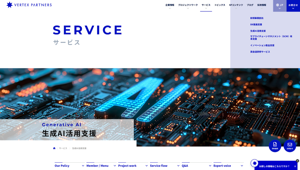 生成AI分野においても、研修・コンサルティングから実装、運用定着までを一貫して支援しています。