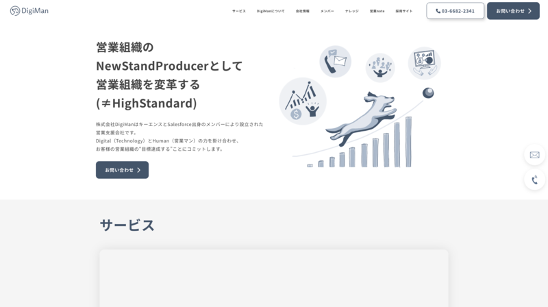 株式会社DigiManは「デジタル(Digital)」と「人間力(Human)」を融合させ、データにもとづいた科学的な営業戦略設計と実行支援を行う会社です。