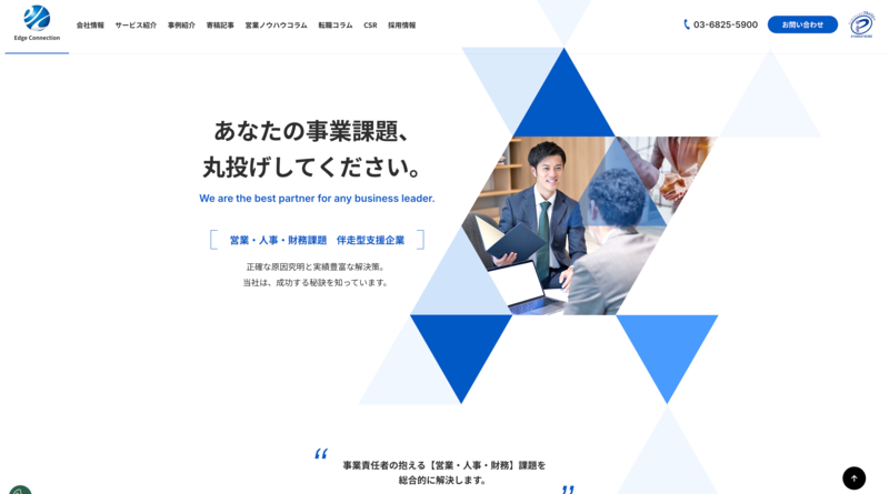 株式会社エッジコネクションは、企業が抱える営業・人事・財務といった経営課題に対して伴走型支援で解決を目指すコンサルティング会社です。