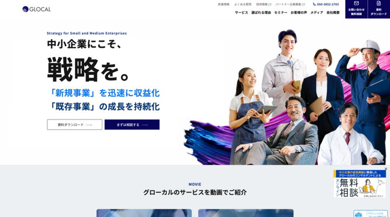 株式会社グローカルは、地方の中堅・中小企業およびBtoB企業をメイン層とし、経営戦略の立案から営業現場での実行支援までをトータルサポートしています。