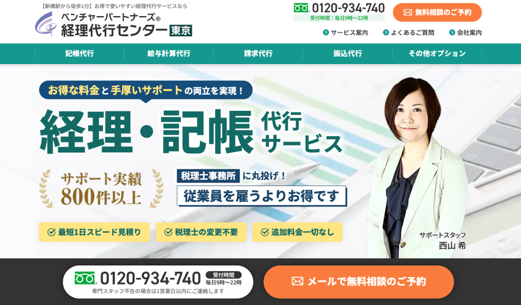 ベンチャーパートナーズ 経理代行センターは、東京の中小企業支援を得意とする会計事務所グループが提供する経理代行サービスです。経験豊富な専門チームによる迅速かつ正確な処理体制を強みに、費用対効果の高いサービスを実現しています。