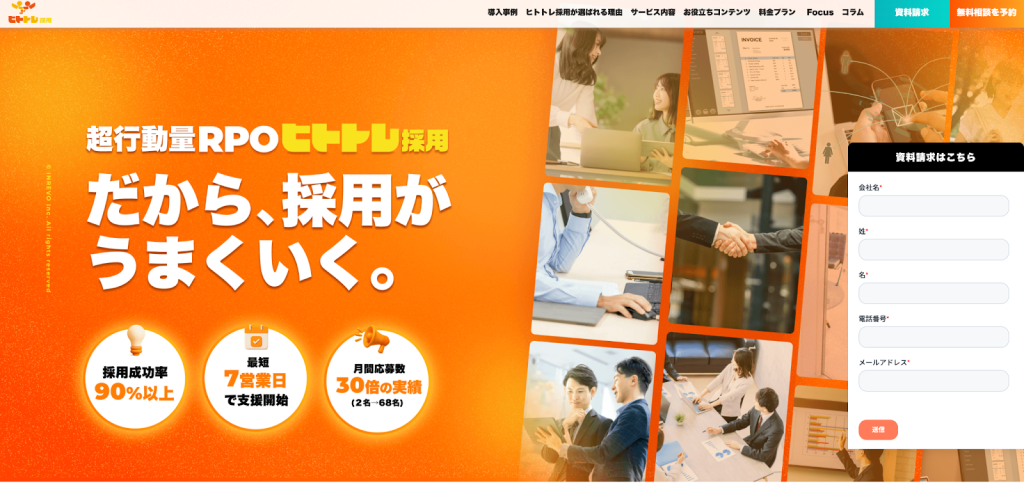 株式会社INREVOは、完全成果報酬型の採用代行サービス「ヒトトレ採用」を中心に展開する、採用支援と研修サービスを提供する企業です。