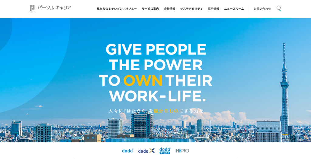 転職サービス「doda」をはじめ、RPO(採用代行)や人材マネジメントなど、採用から定着・育成までをトータルで支援。