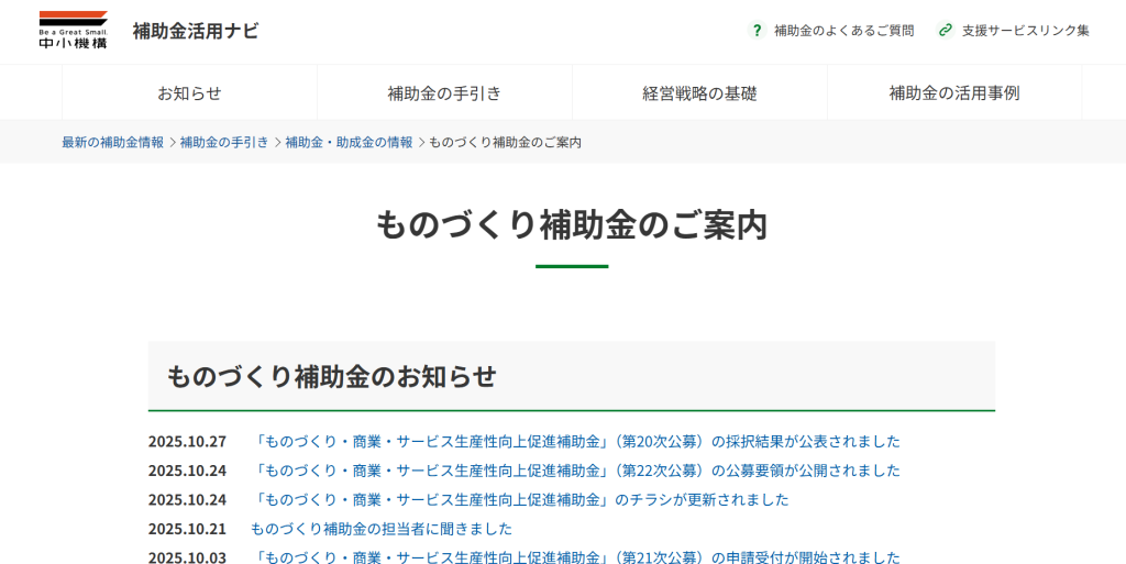 参考:ものづくり補助金のご案内 | 補助金活用ナビ(中小機構)