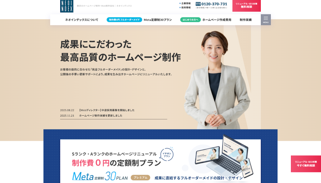 株式会社ネオインデックスは、1999年の設立以来、20年以上にわたりWebサイト制作を手がけてきた実績豊富な制作会社です。