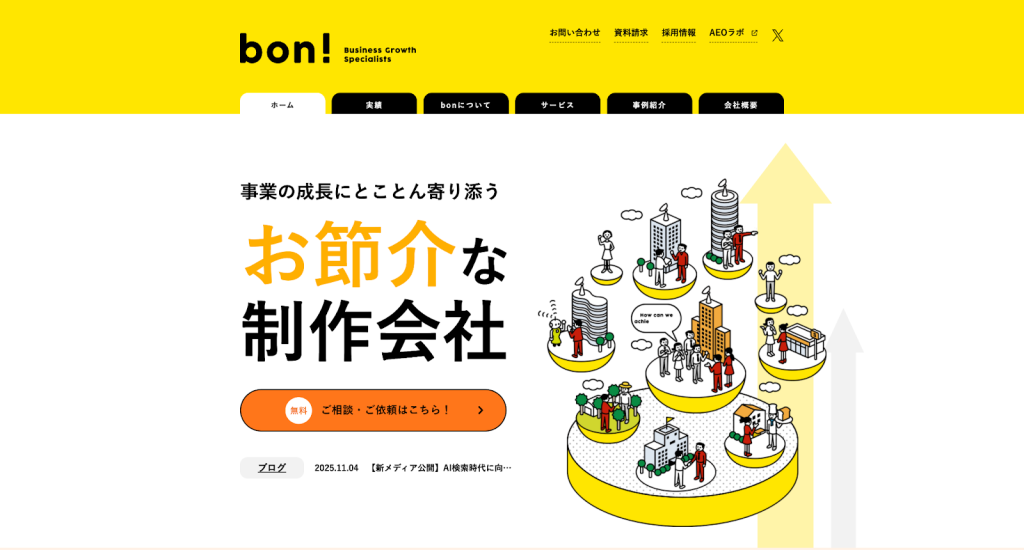 株式会社bonは、東京と大阪に拠点を持ち、企業のブランド価値を高めるWebサイト制作を得意とする制作会社です。