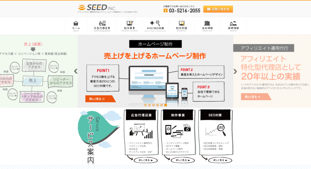 | 制作可能なホームページ | ・コーポレートサイト・採用サイト・サービスサイト |
