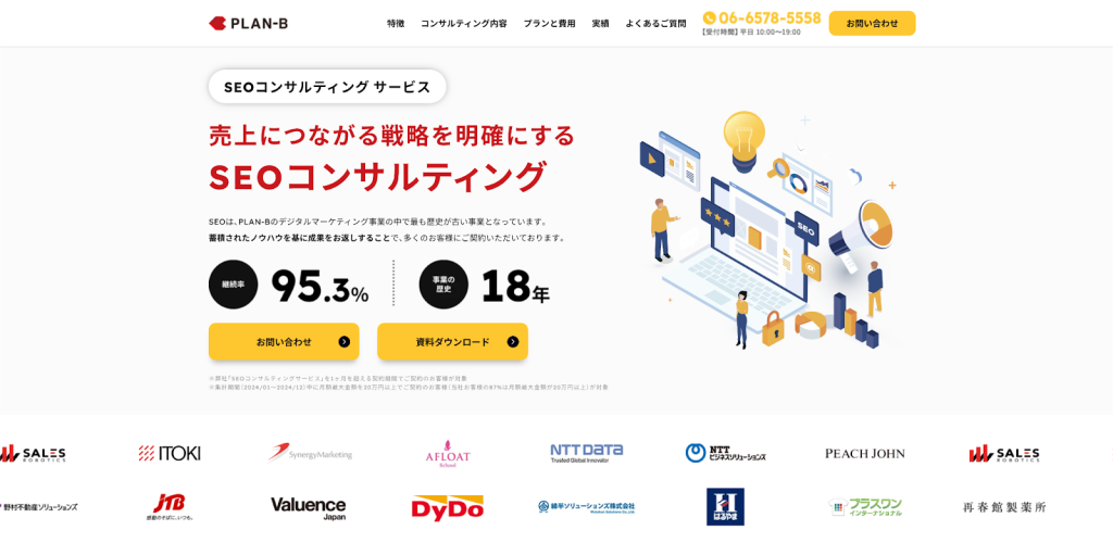 企業のWebサイトの課題を丁寧に分析し、戦略立案から記事制作、サイトリニューアル、効果測定まで一貫サポートできるのが特徴です。