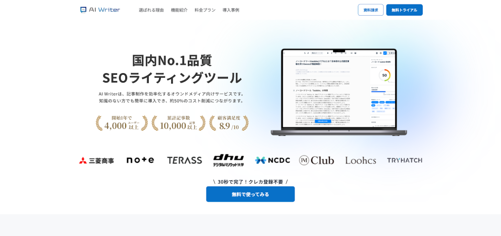 1記事15,700円(3記事から依頼可能)という低価格帯で高品質な記事制作を依頼できるのも魅力。スモールスタートしたい企業にも利用しやすいサービス設計となっています。