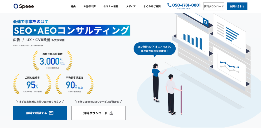 最近では、生成AI検索(LLMO)に対応したSEO施策にも注力。従来の検索エンジンだけでなく、AI時代を見据えた戦略立案が可能です。