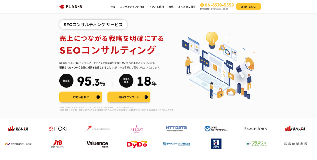 株式会社PLAN-Bは、データ分析と戦略設計を強みに、企業のSEO課題を総合的に支援するデジタルマーケティング企業です。