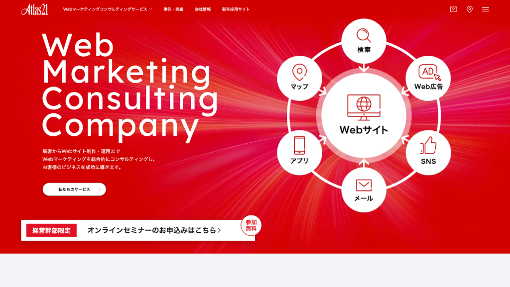 最大の特徴は、データとテクノロジーを駆使したマーケティング戦略にもとづき、Webサイトを企業の成長エンジンへと進化させる点です。