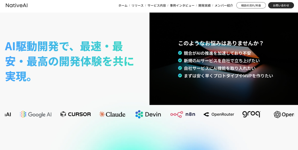 | 費用 | システム開発:150万〜5,000万円AI駆動開発・基盤構築支援:月額50万円 |